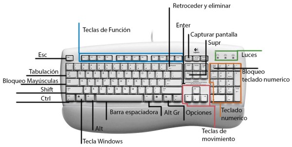 Es un periférico de entrada en el ordenador, es decir, es un componente externo que se conecta al ordenador mediante algún puerto (interfaz mediante la cual se conecta un periférico al ordenador). Tiene entre 101 y 108 teclas aproximadamente y esta dividido en 4 bloques.